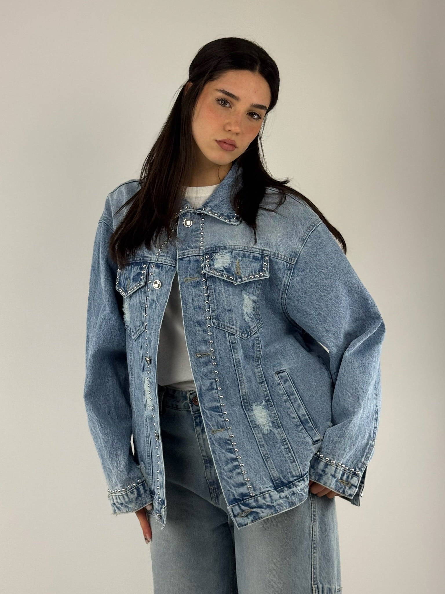 • Giubbino in denim con borchie, taglio over.