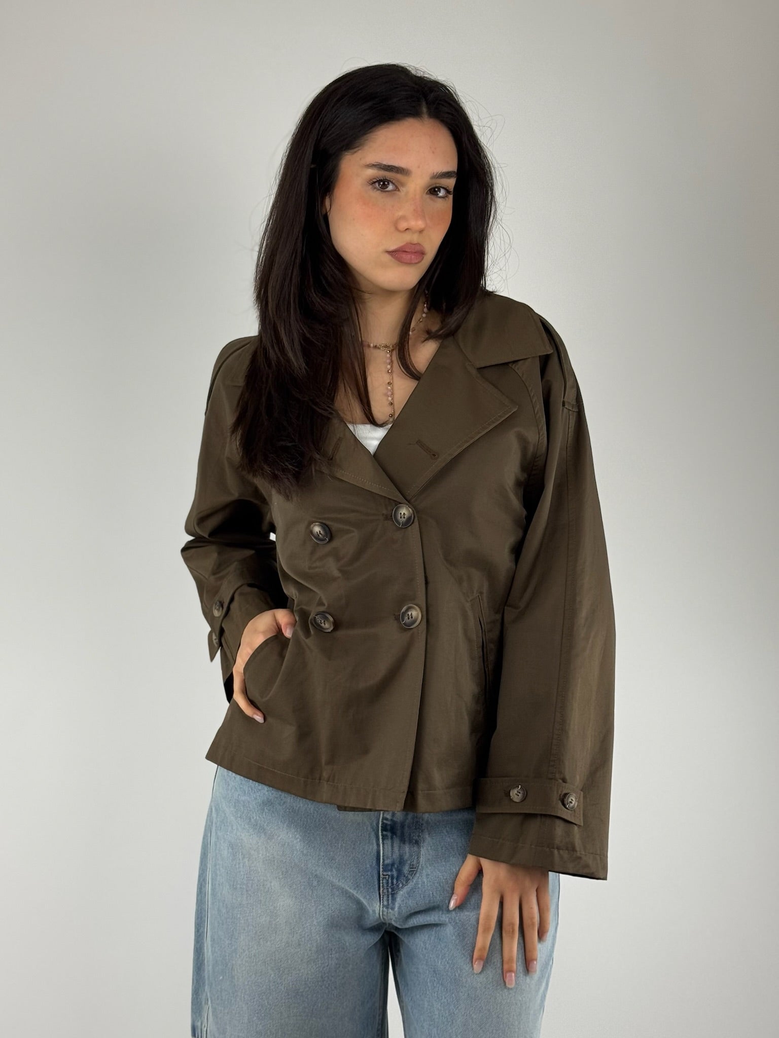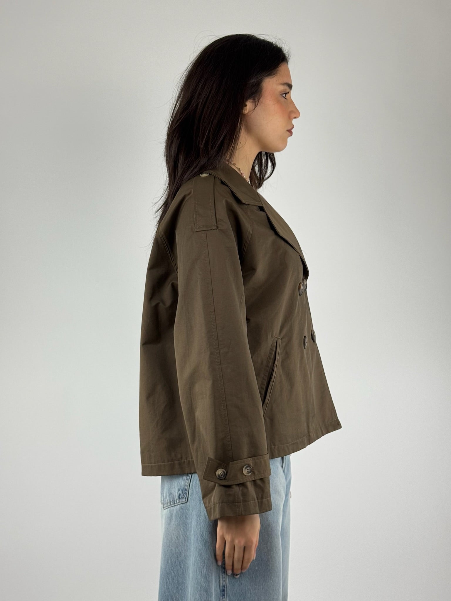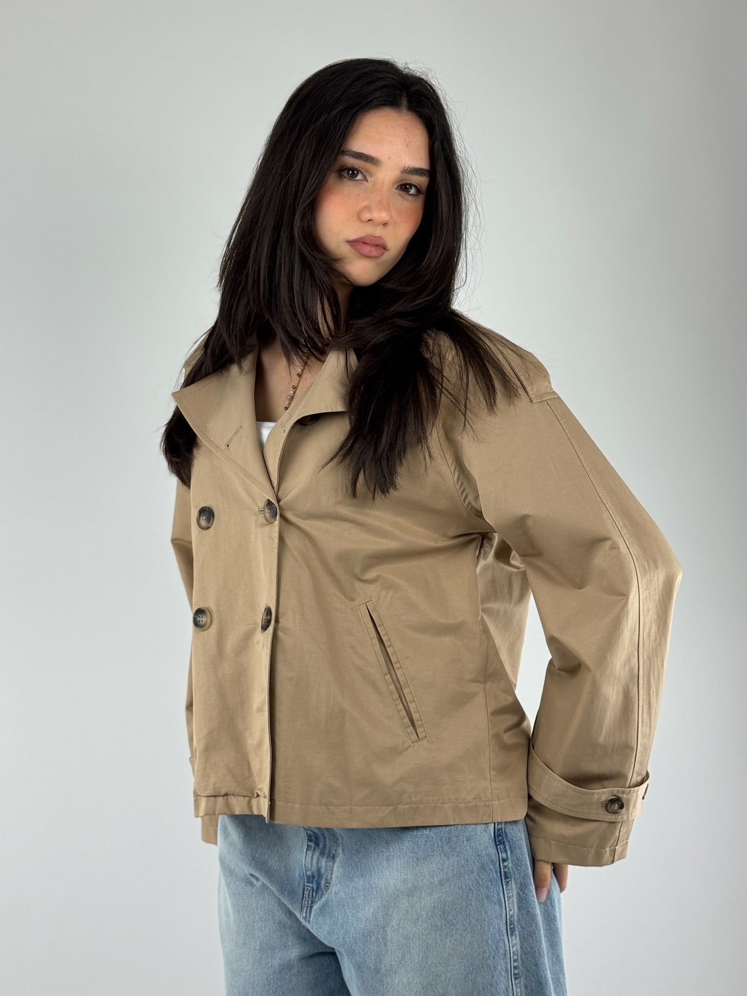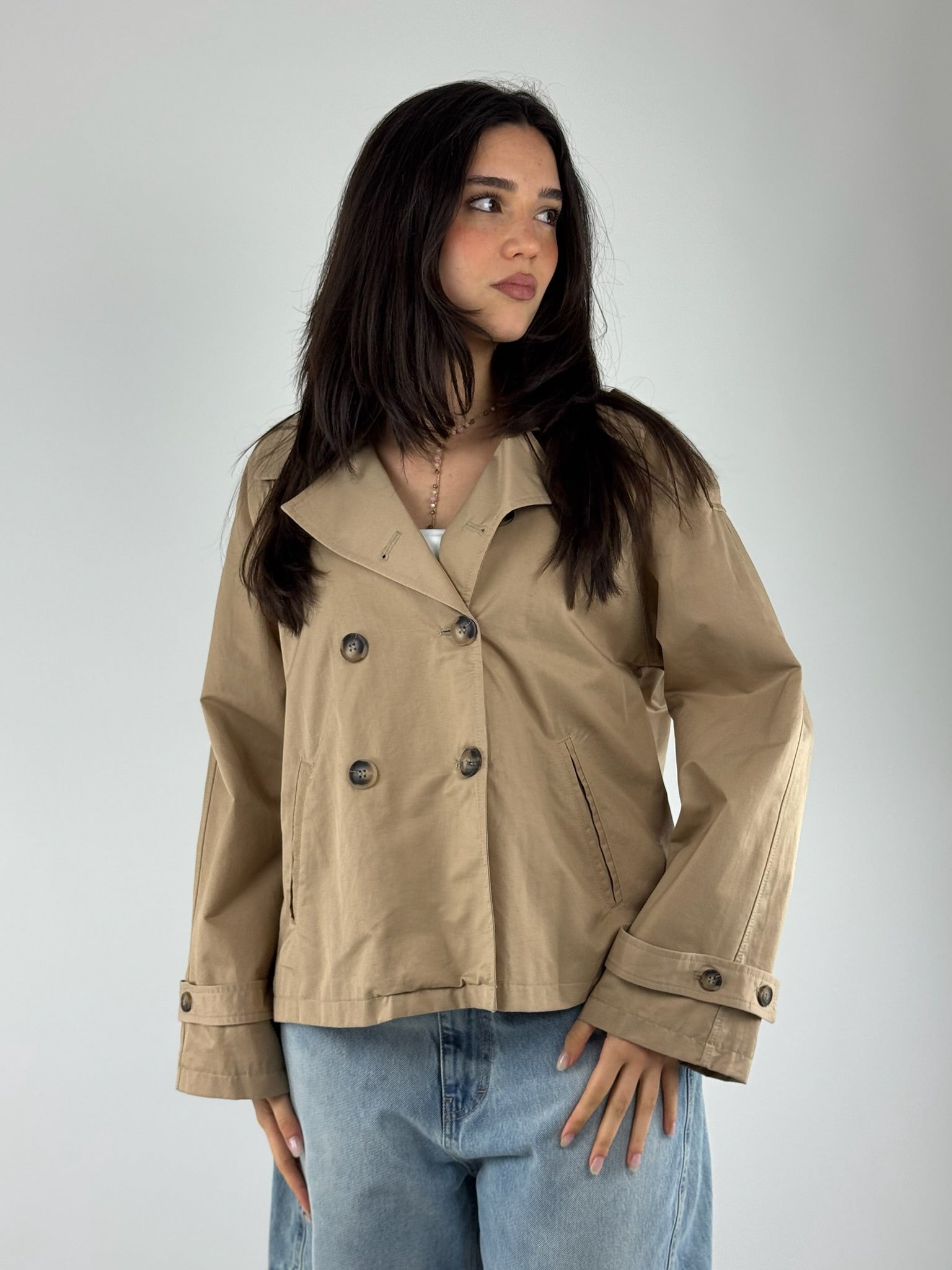 •Trench corto doppio petto, in cotone , vestibilitá regolare.