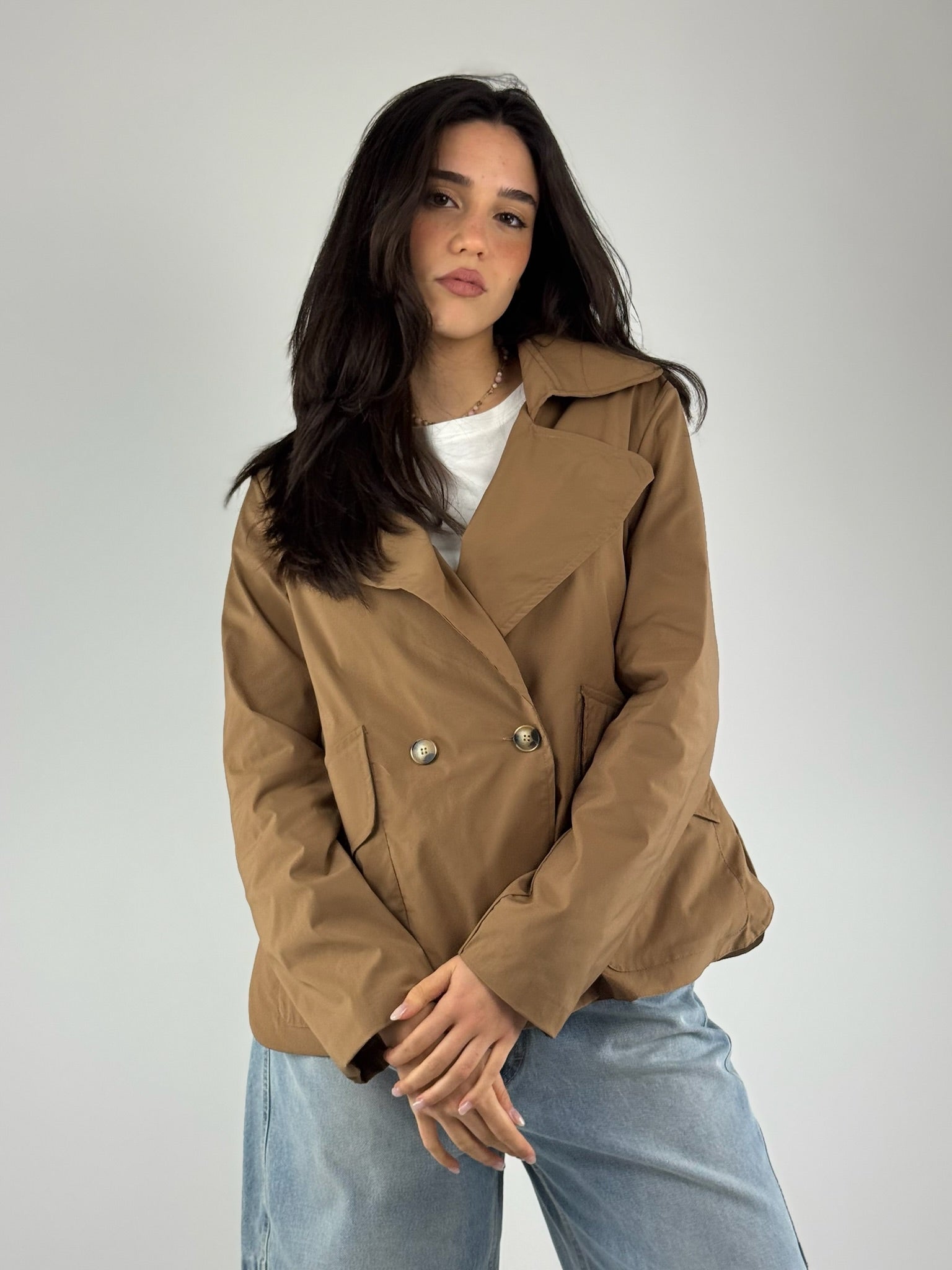 • Trench corto , doppiopetto, dalla vestibilitá regolare.