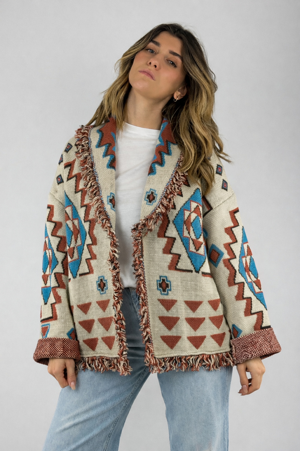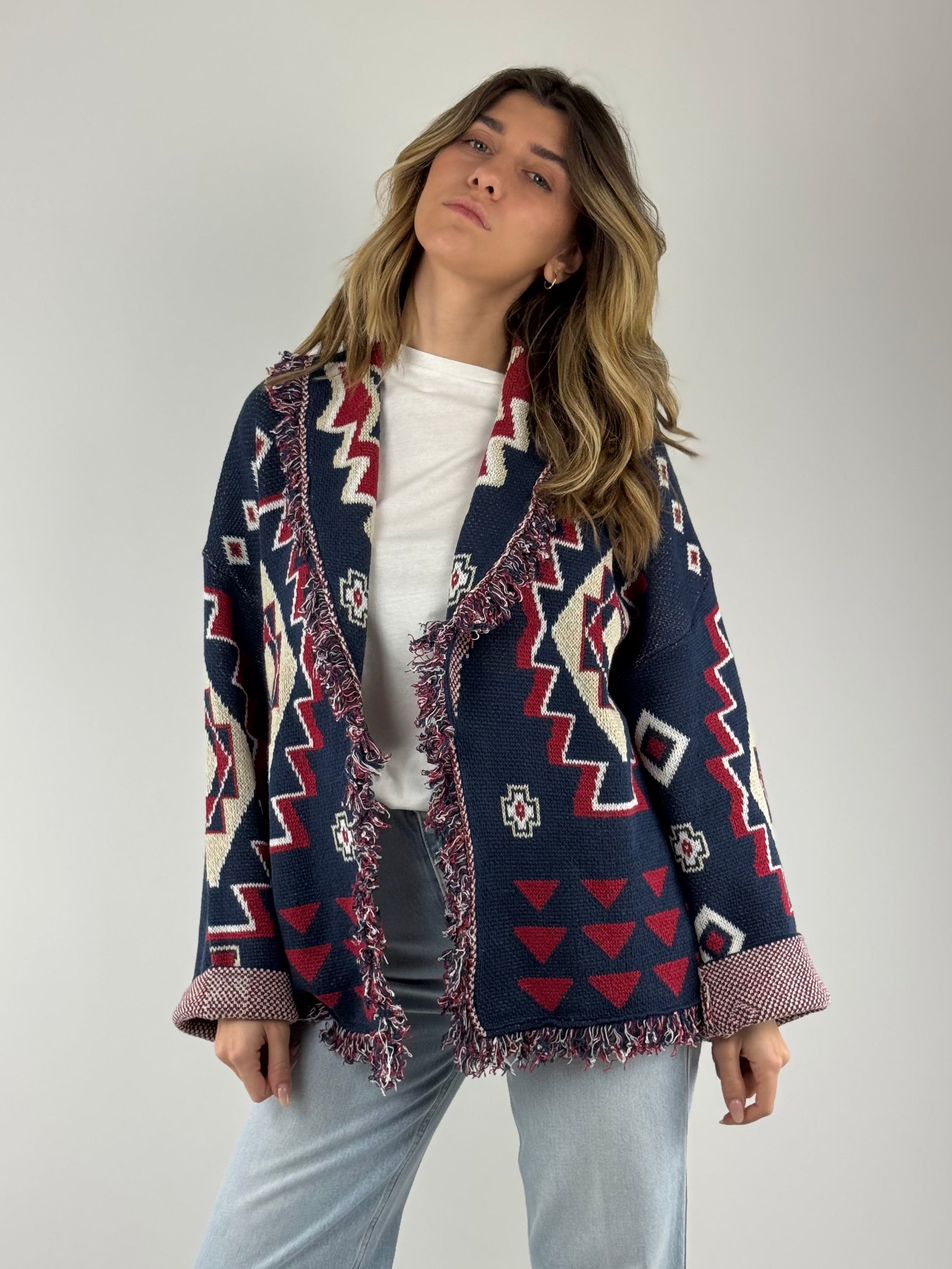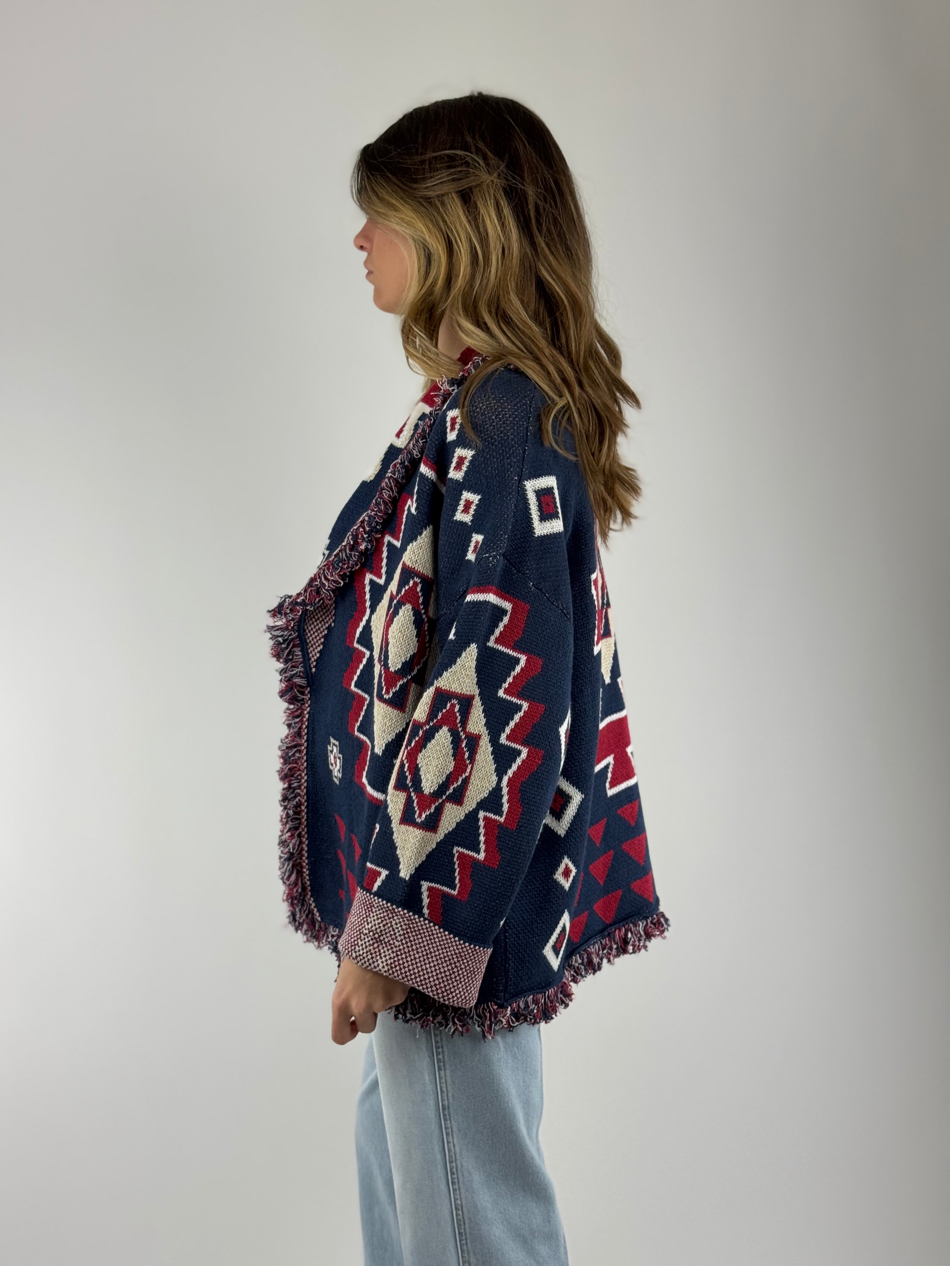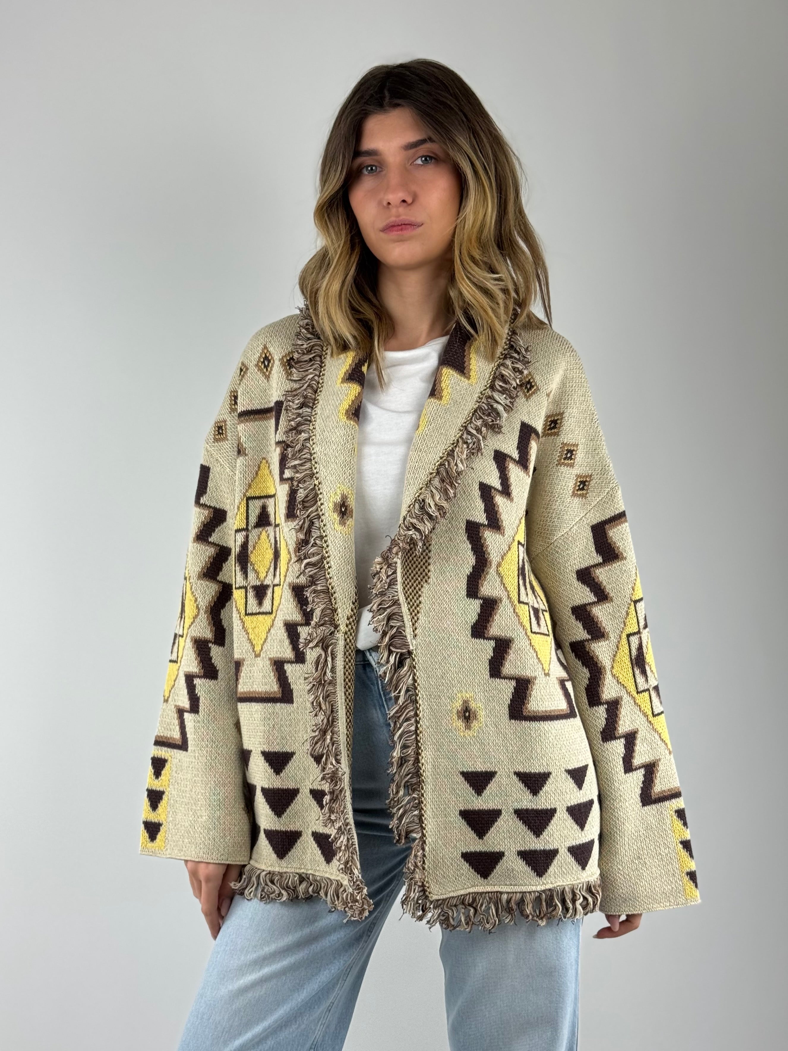 • Cardigan micol in cotone , aperto con frange.