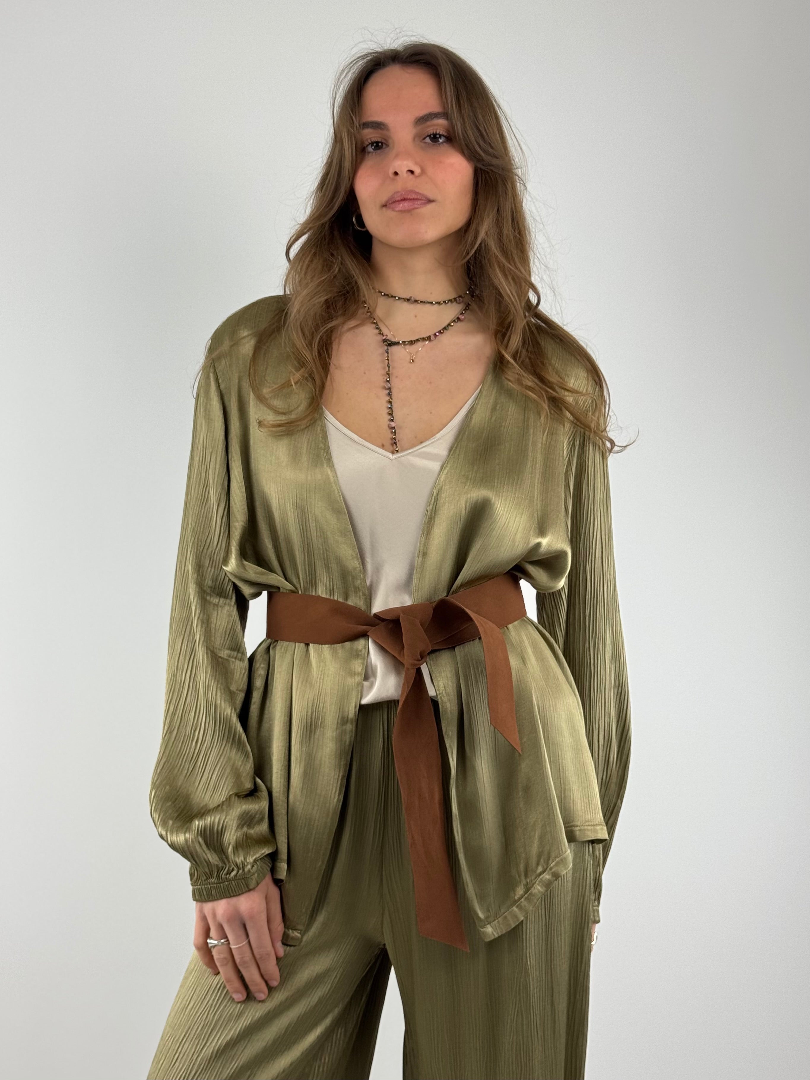 Giacca kimono con cintura camoscio - JWG-Q001