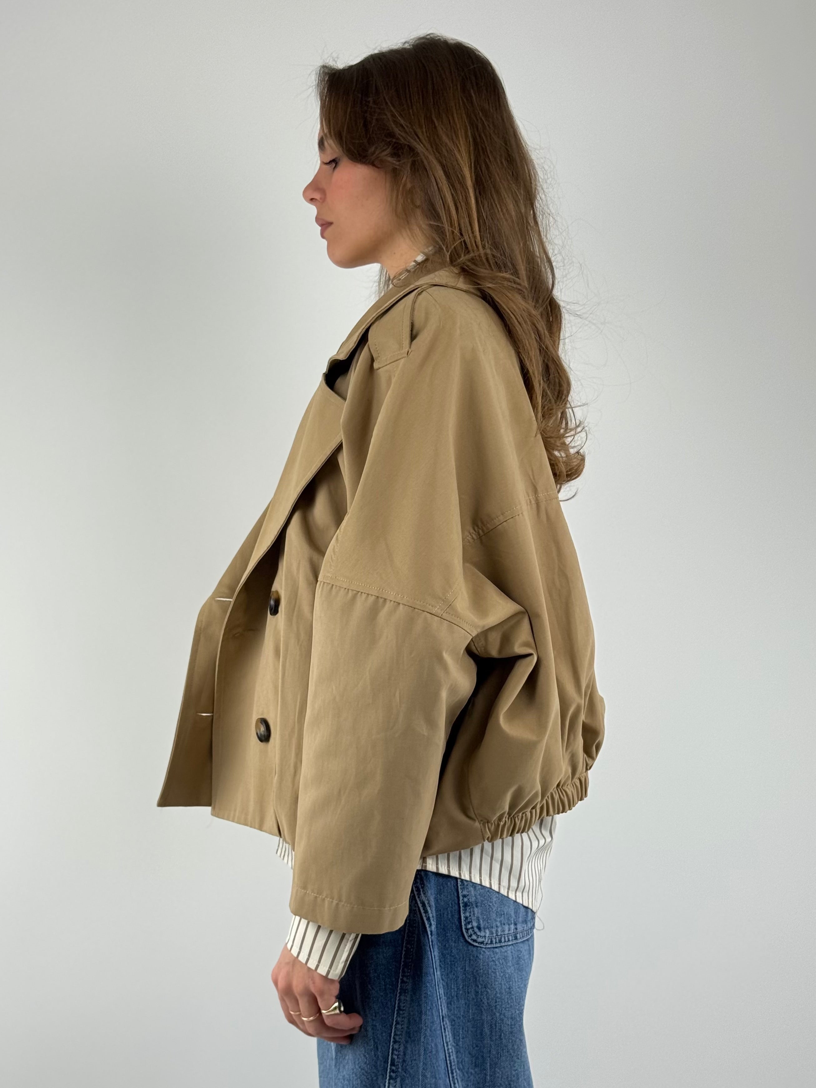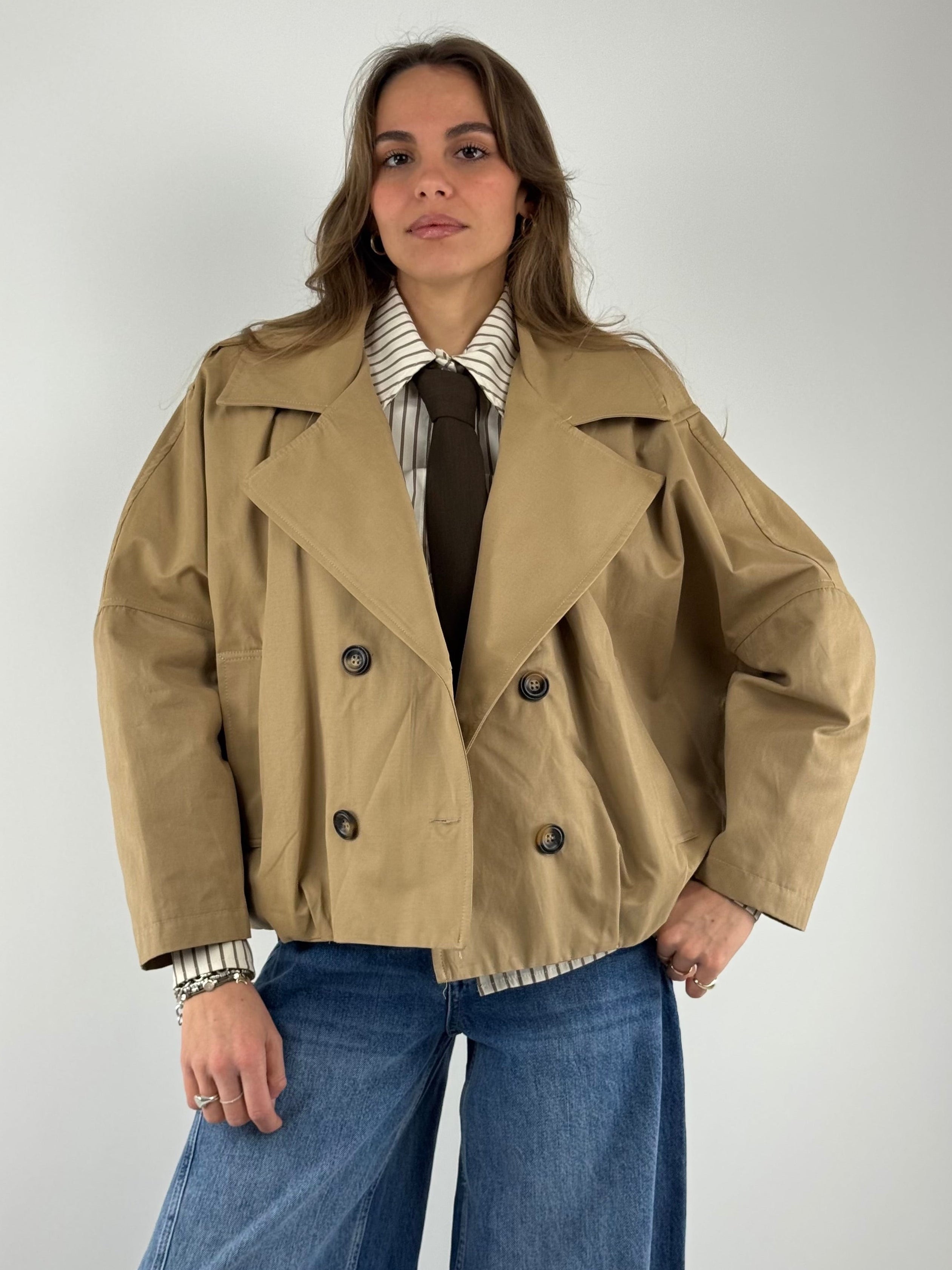 • Trench corto doppiopetto , foderato al suo interno.