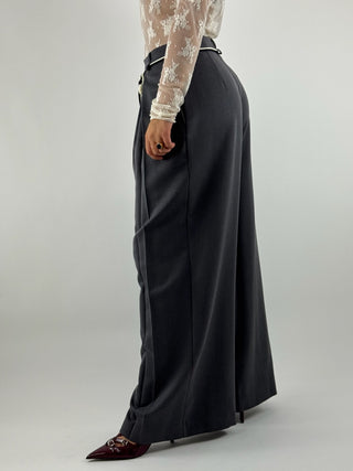 Pantalone vita alta a gamba dritta con elastico posteriore - 16467/3060