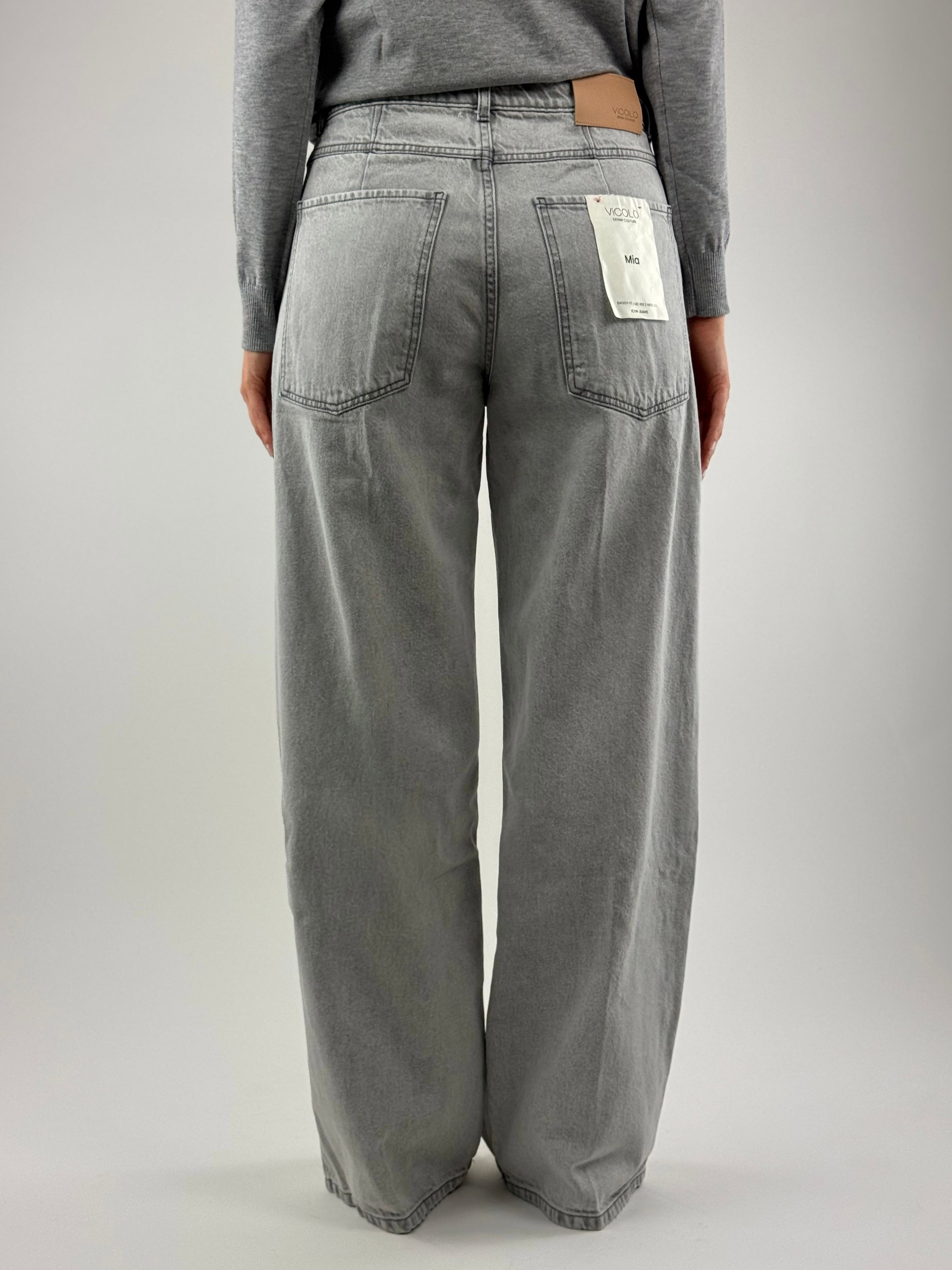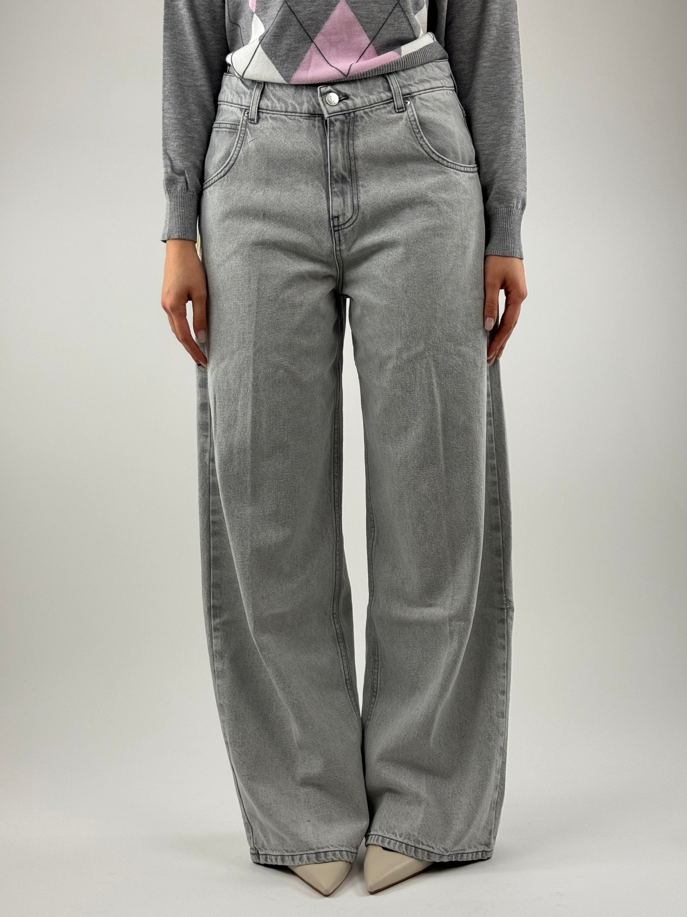 • Jeans ampio modello cinque tasche. Chiusura frontale con zip e bottone in metallo. Vita media, gamba ampia.