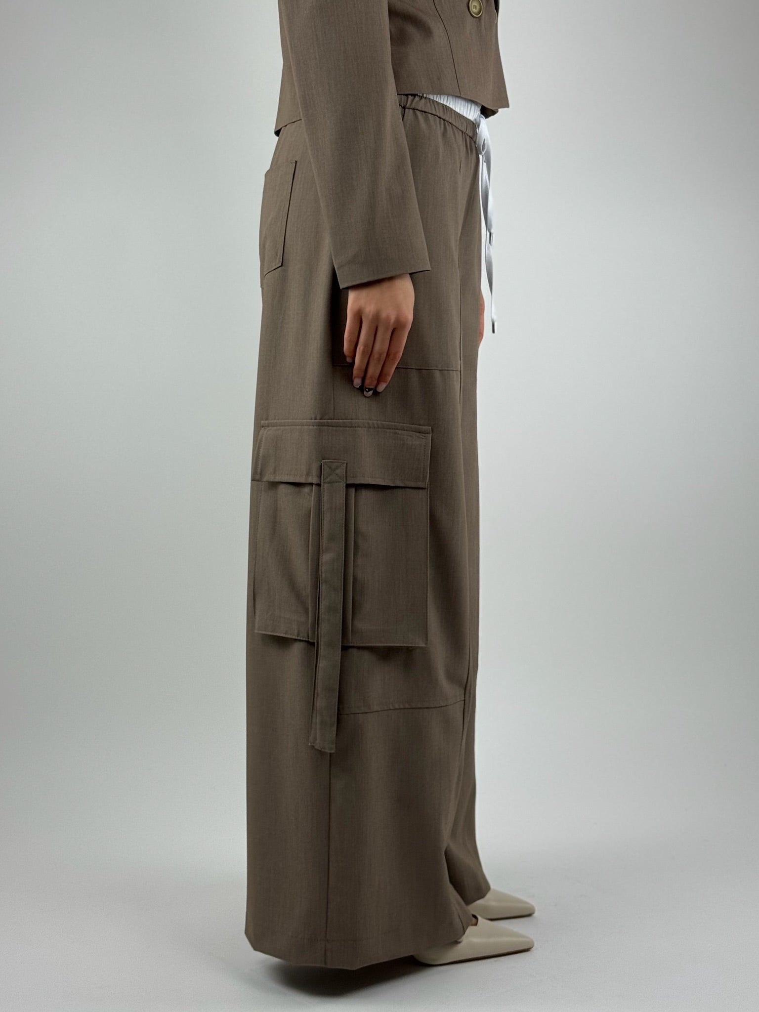 • Pantalone cargo ,con tasconi ,con elastico in vita.