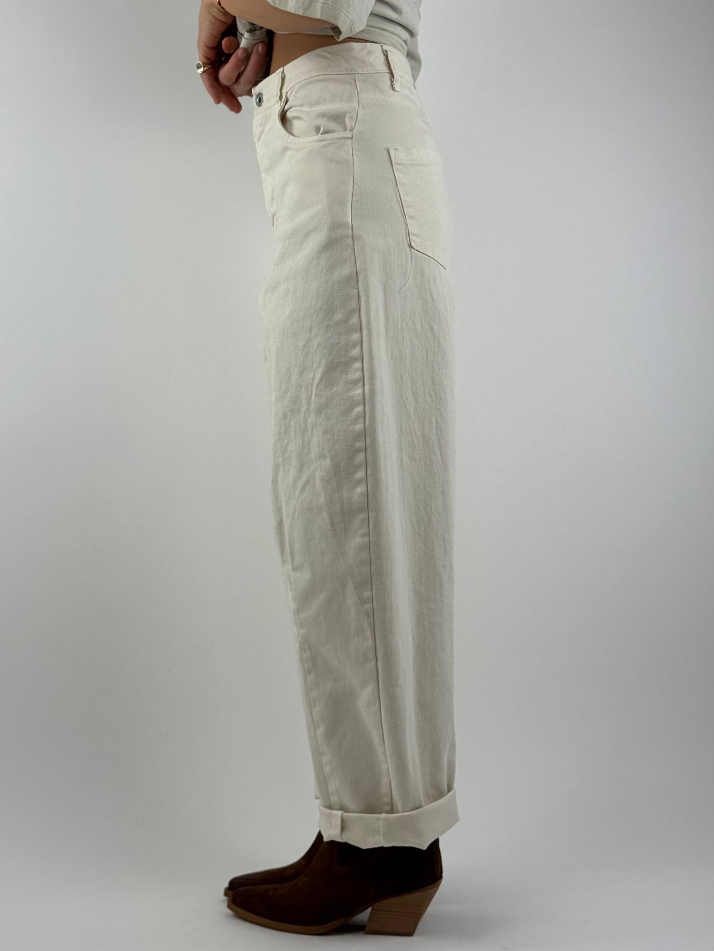 • Pantalone baloon , vita alta , effetto jeans.
