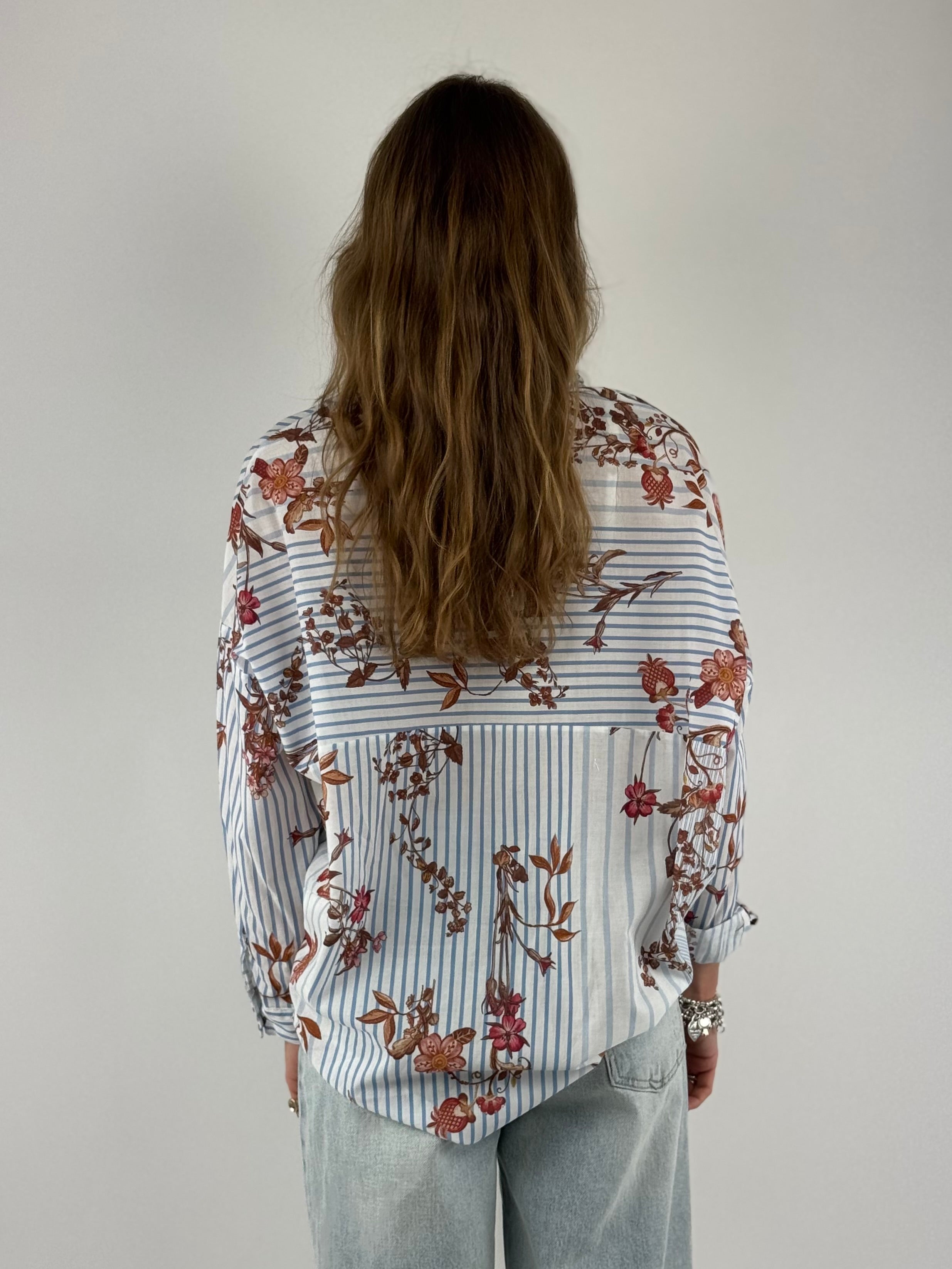• Camicia in cotone , modello morbido , con fantasia fiori.