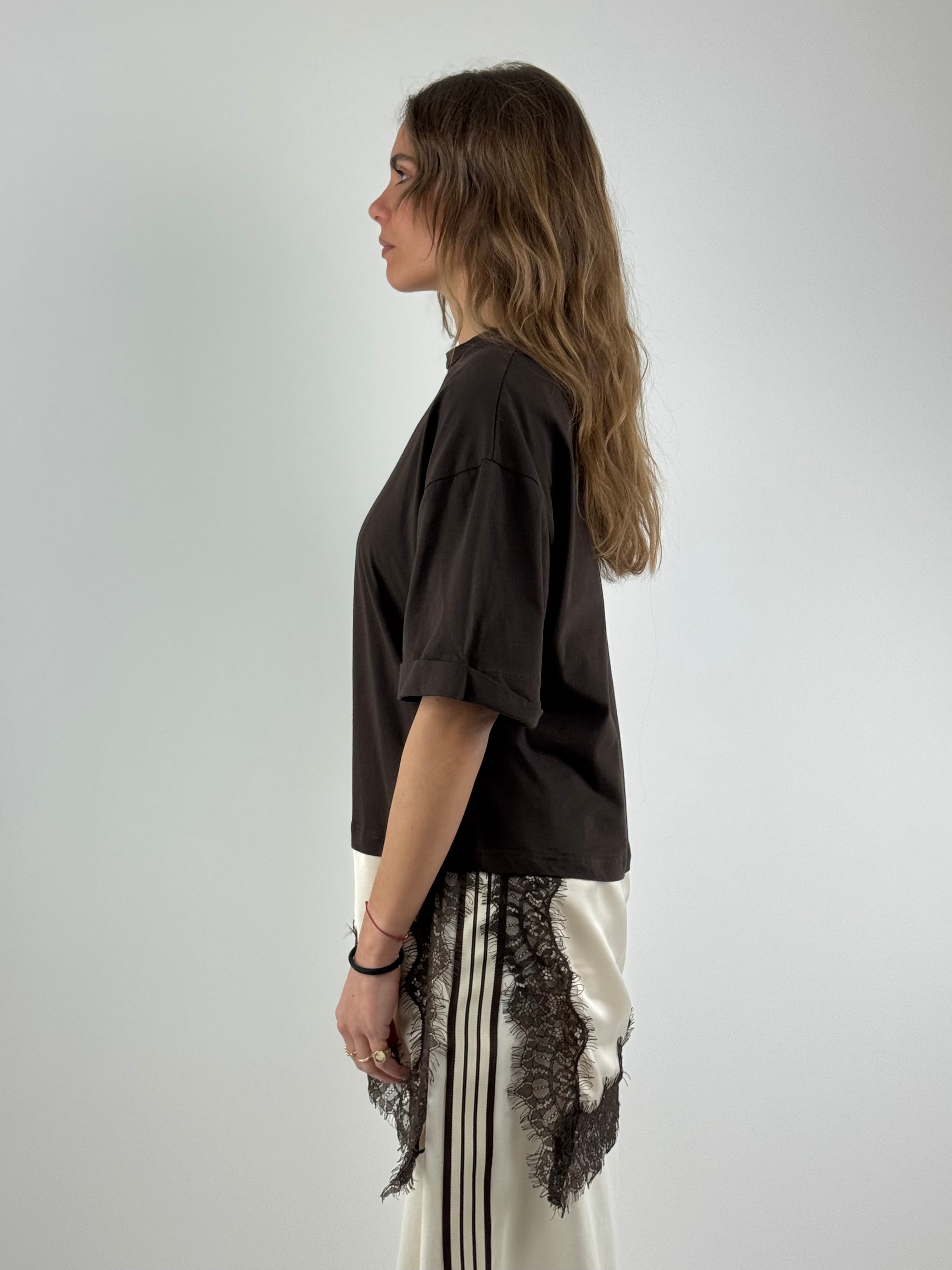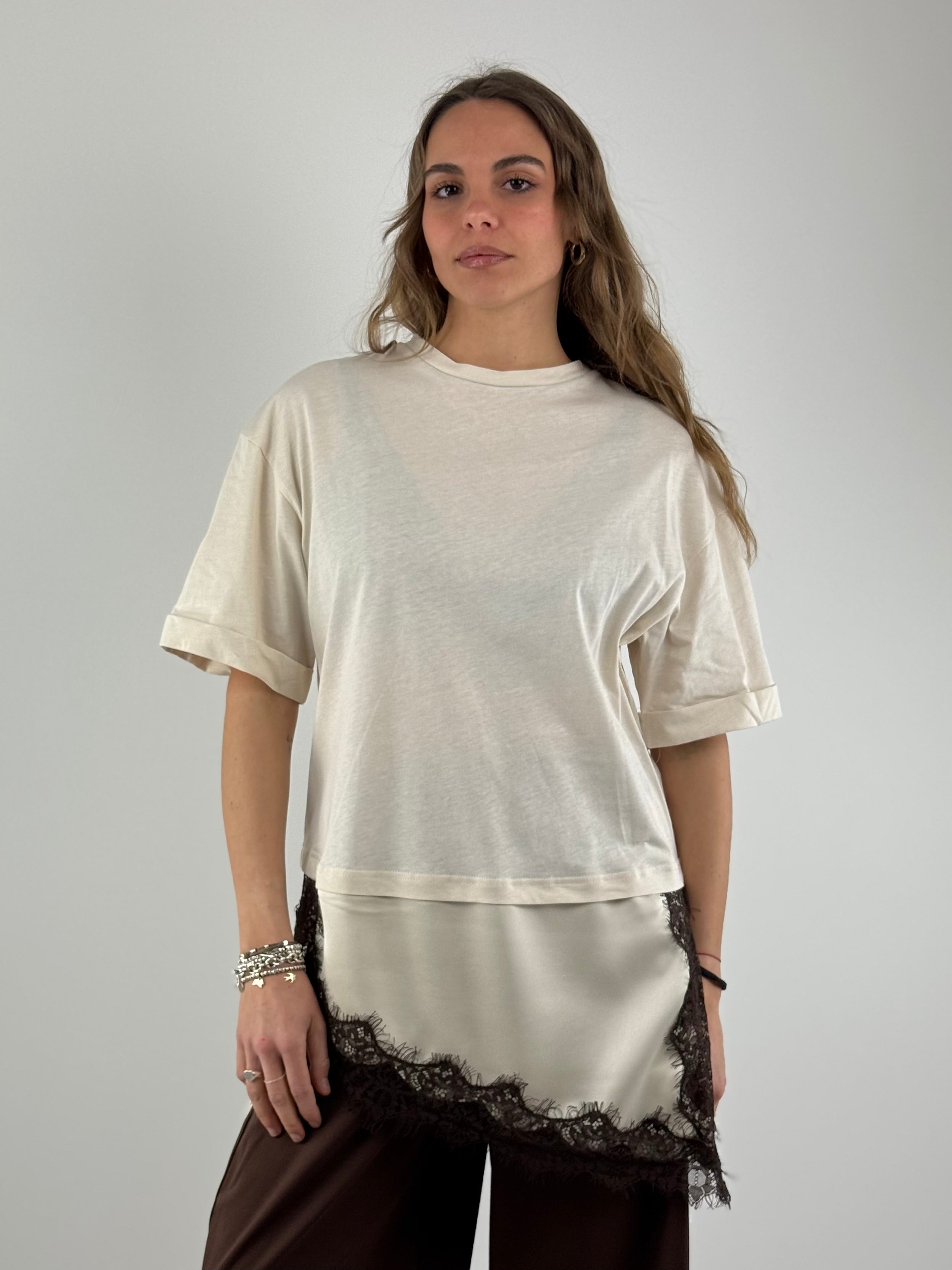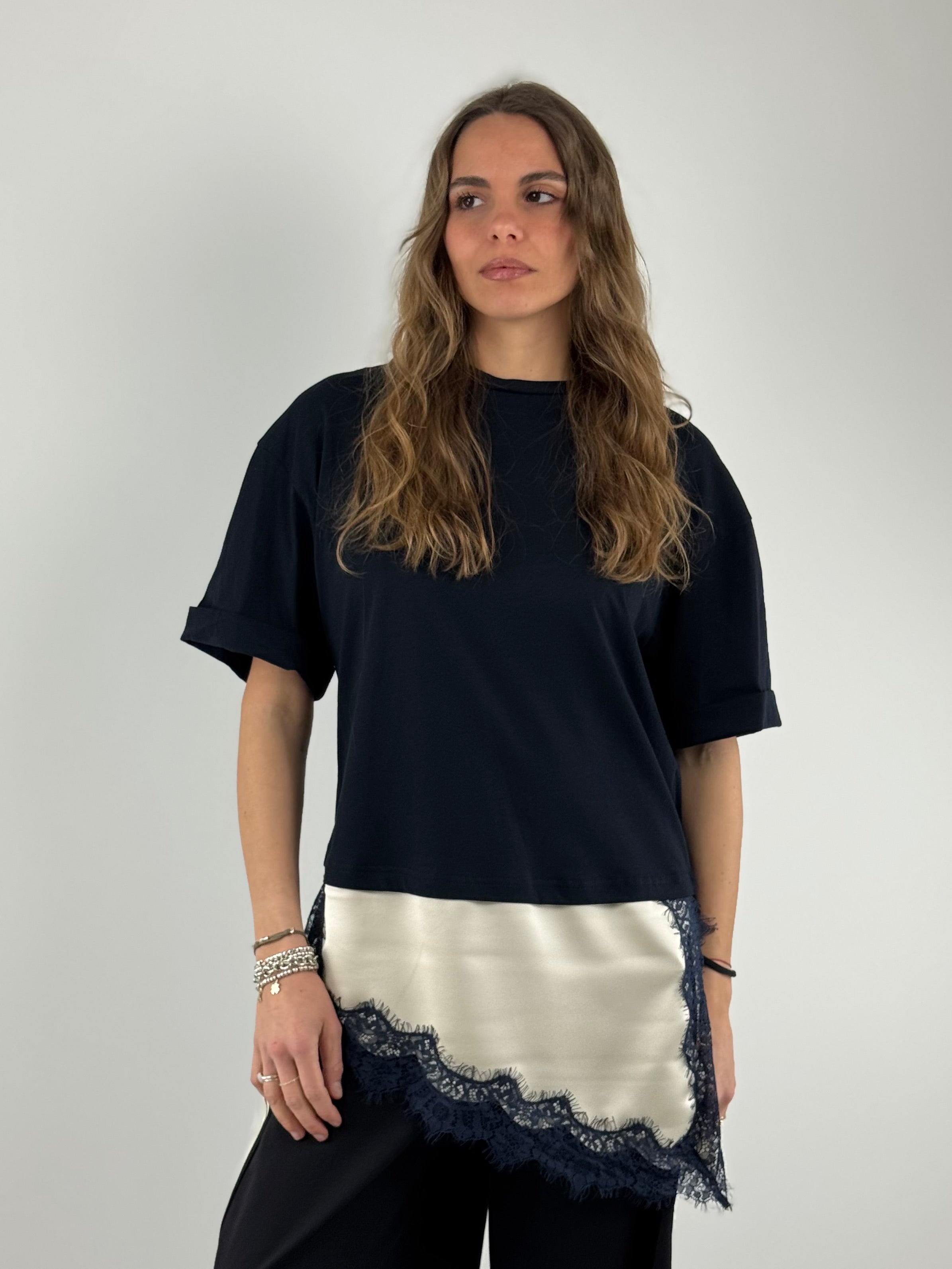 • T-shirt con inserto in raso e pizzo.