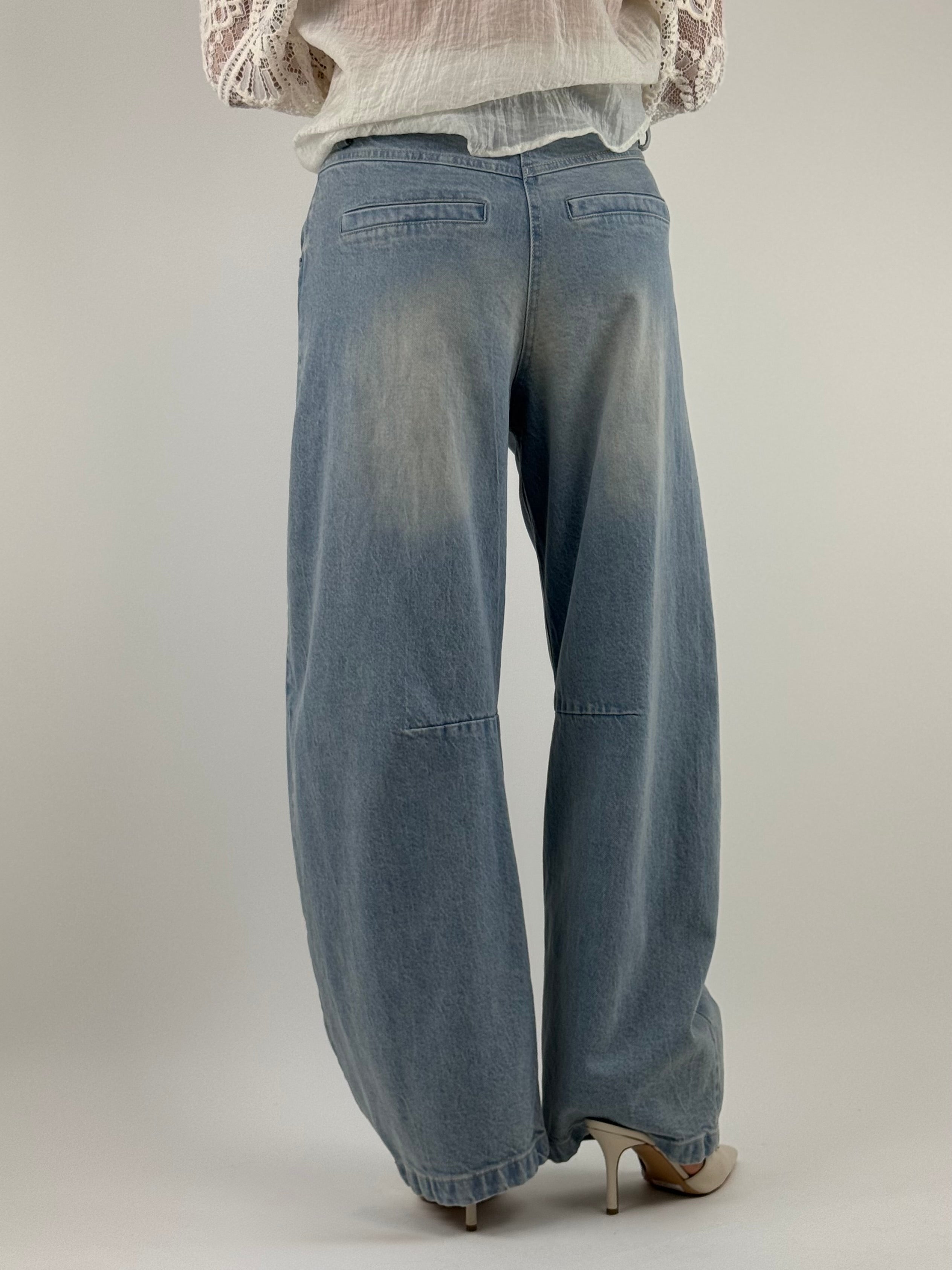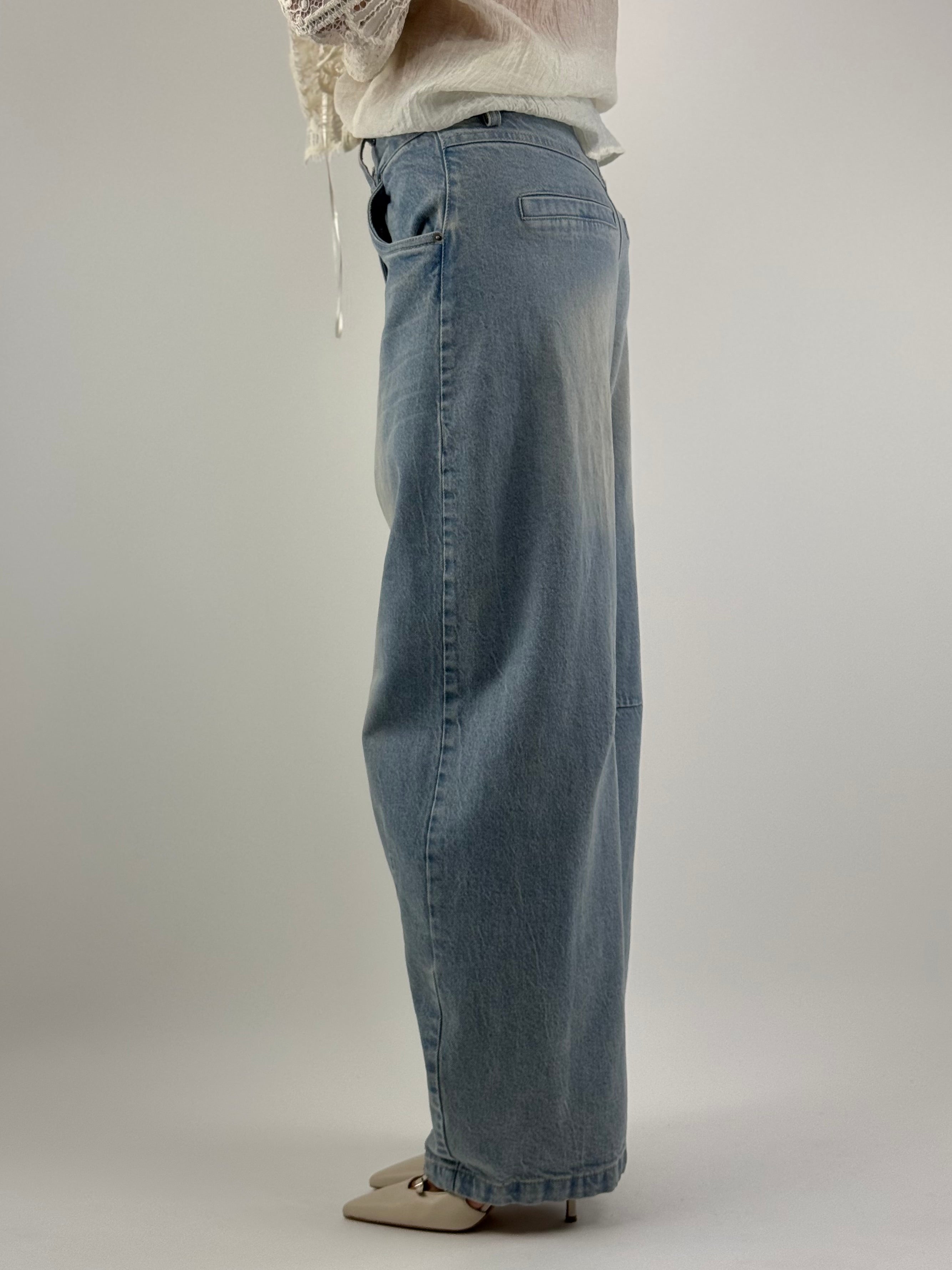 • Jeans baloon a vita bassa , dal lavaggio chiaro.