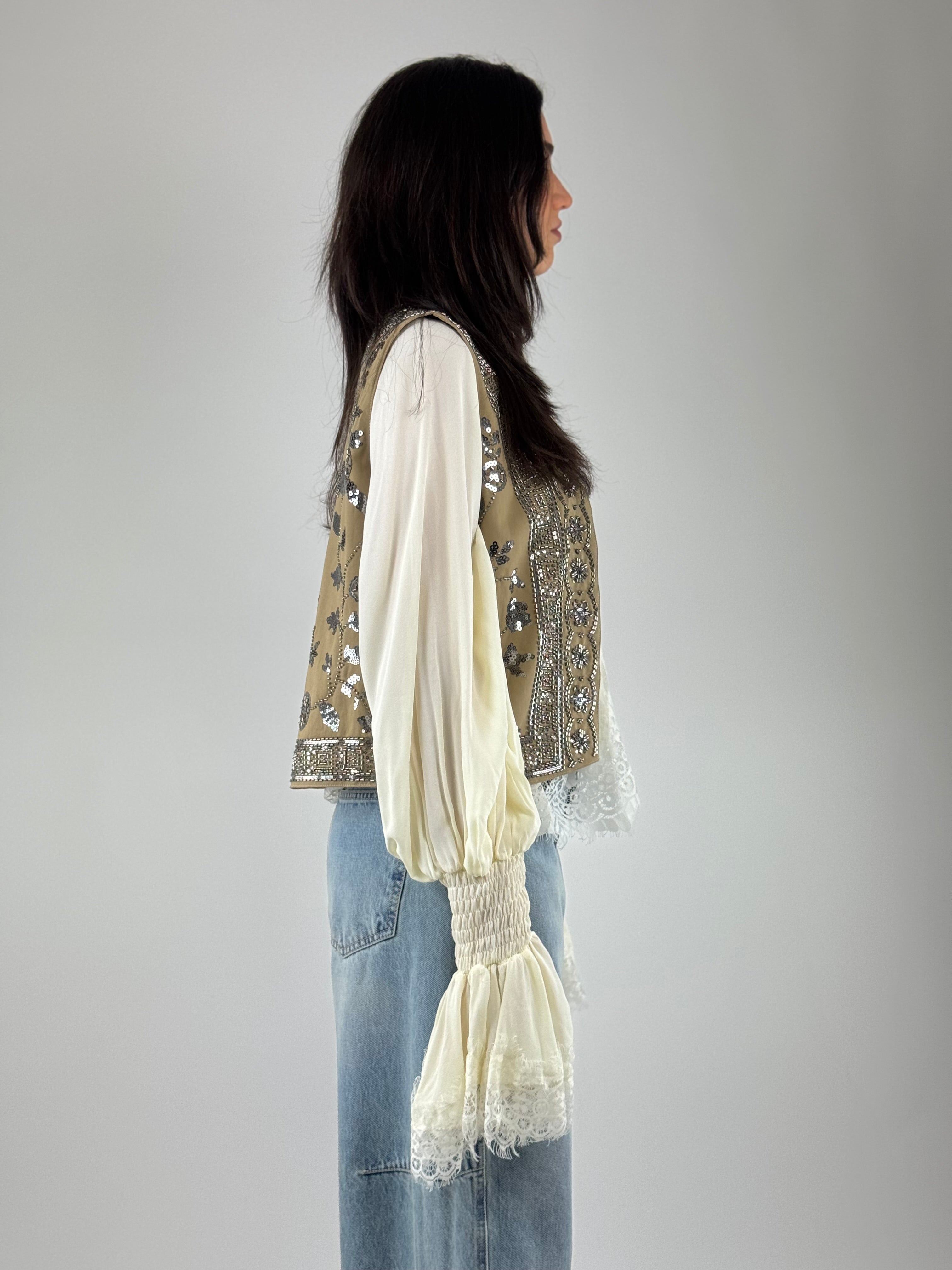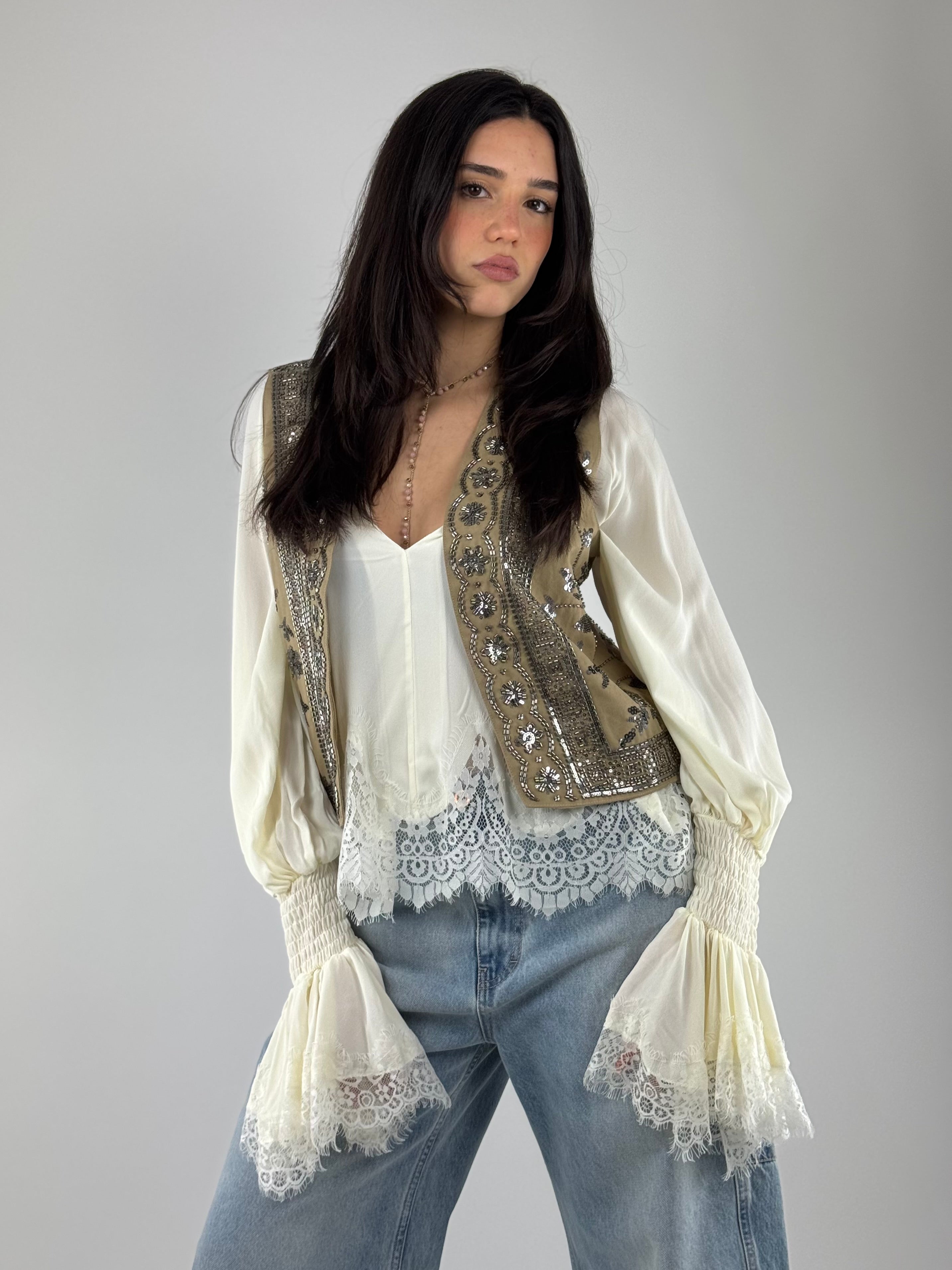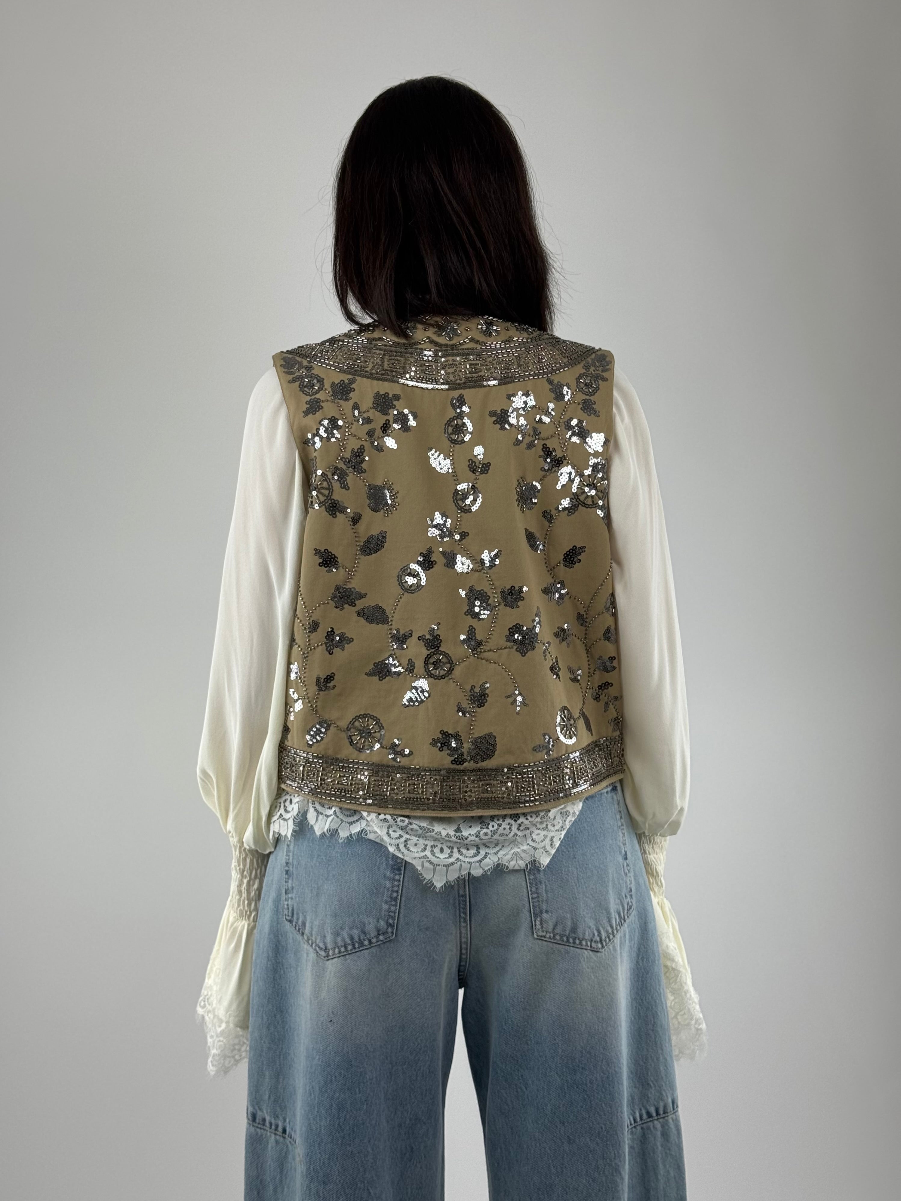 • Gilet aperto con ricamo perle.
