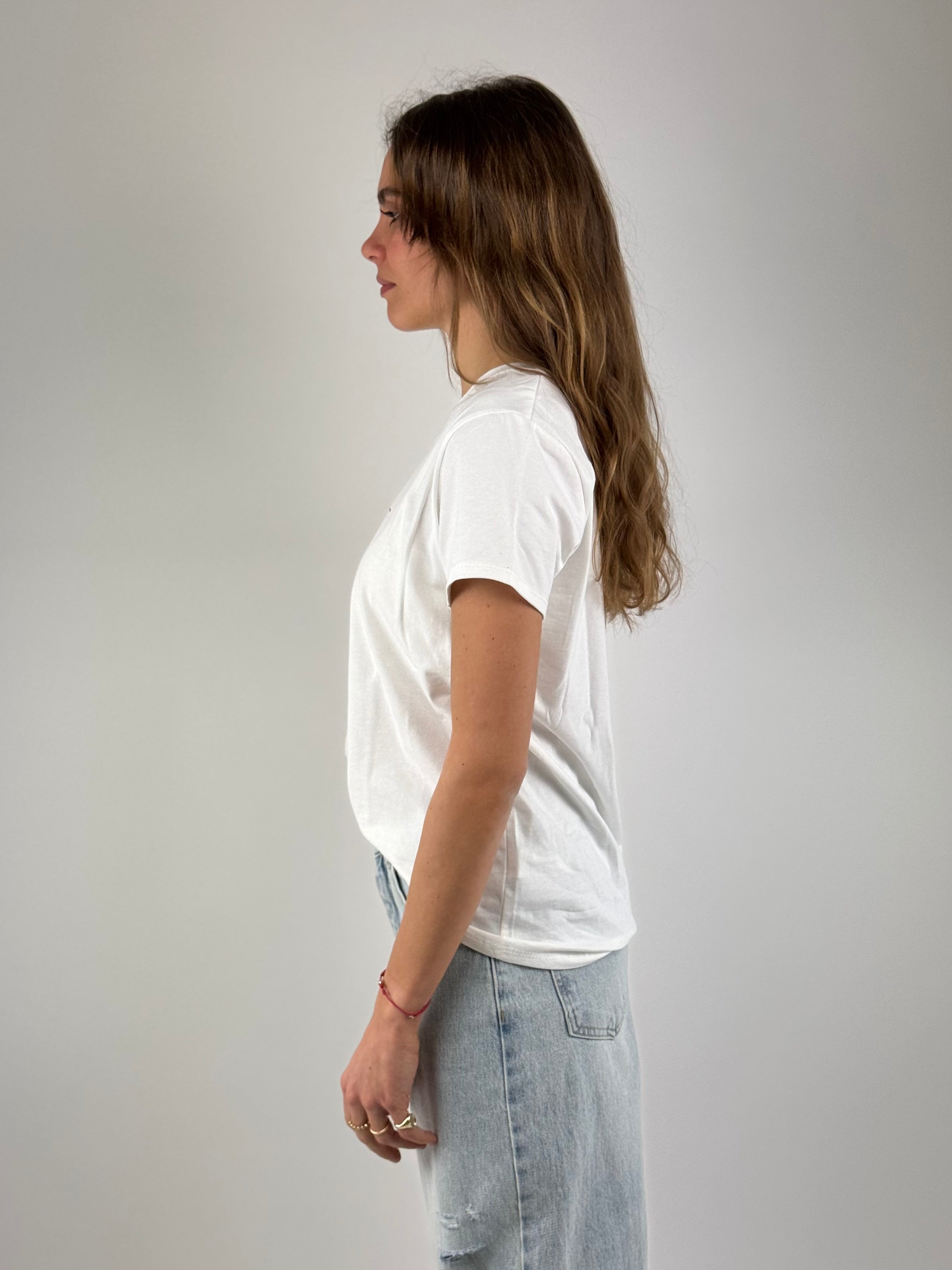 • T-shirt in cotone , con scritta , modello dritto .